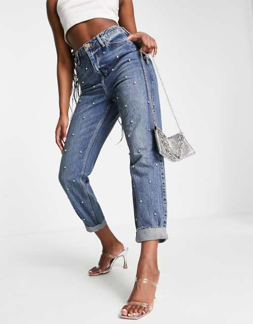 Diamante jeans river clearance island, River Island Stonewash Diamante Stud Embellished clearance
