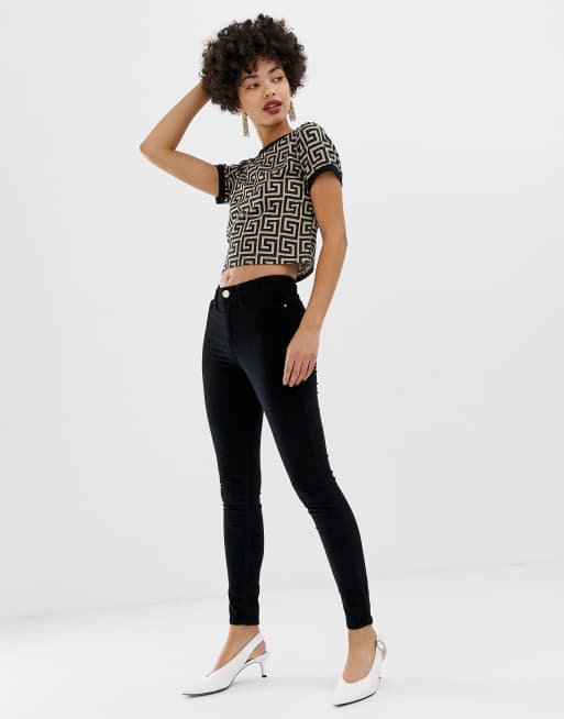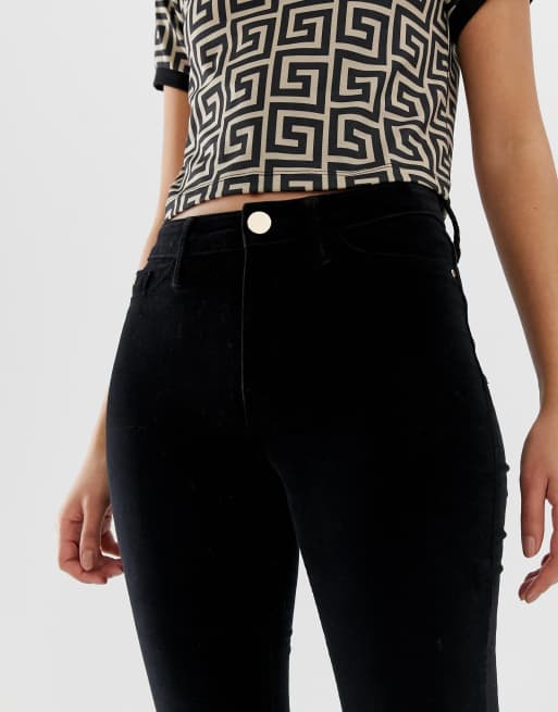 River Island Molly velvet skinny jeans in black ASOS