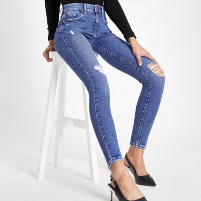 River Island Womens Bright Blue Amelie super skinny ripped jeans