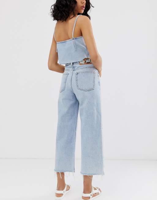 Cheap Monday cotton high rise wide leg jeans with raw hem ASOS