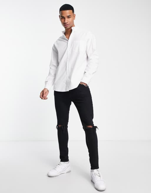 White button down clearance and jeans men, ASOS DESIGN 90s oversized oxford shirt in white clearance