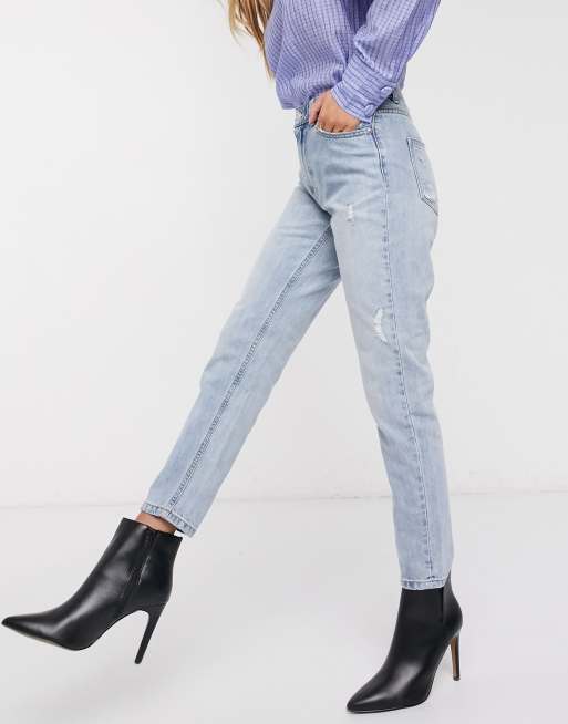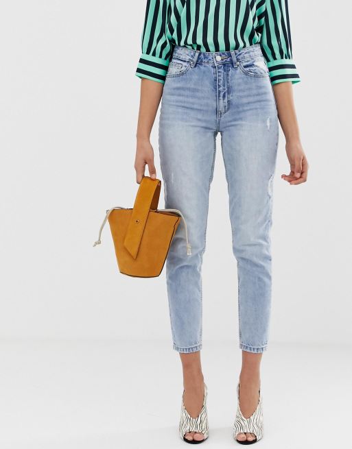 Vero Moda high waist ankle grazer mom jean in light blue ASOS