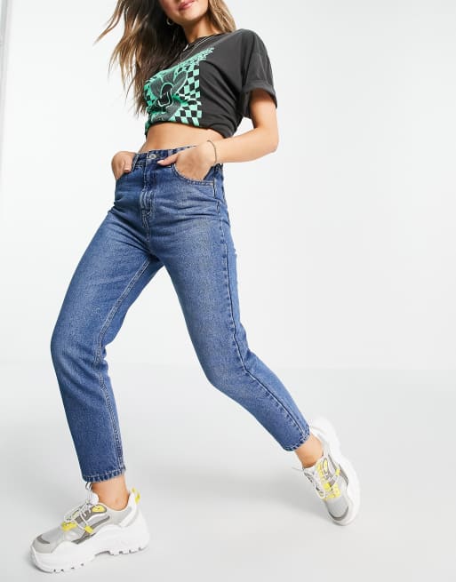 DTT Emma super high waisted mom jeans in mid wash blue