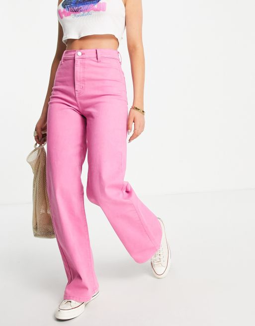 Bright Pink High Waist Adalae Wide Leg Jeans New Look