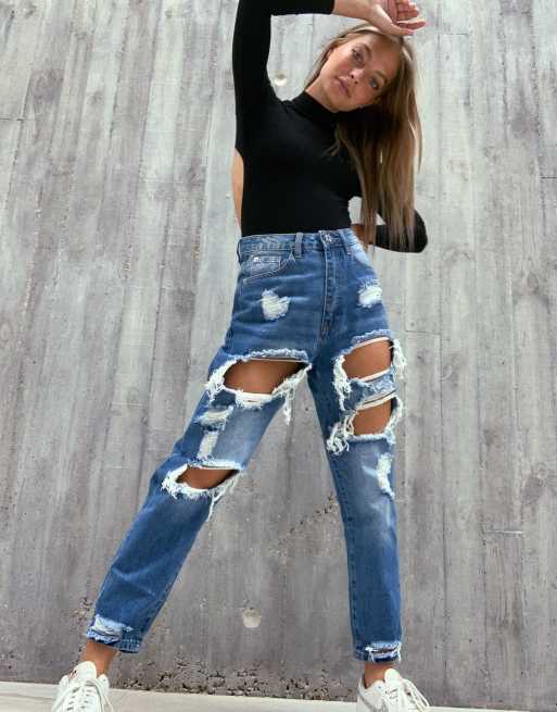 Blue riot high clearance rise ripped jeans, Favorite Look High Waist Ripped Baggy Jeans clearance