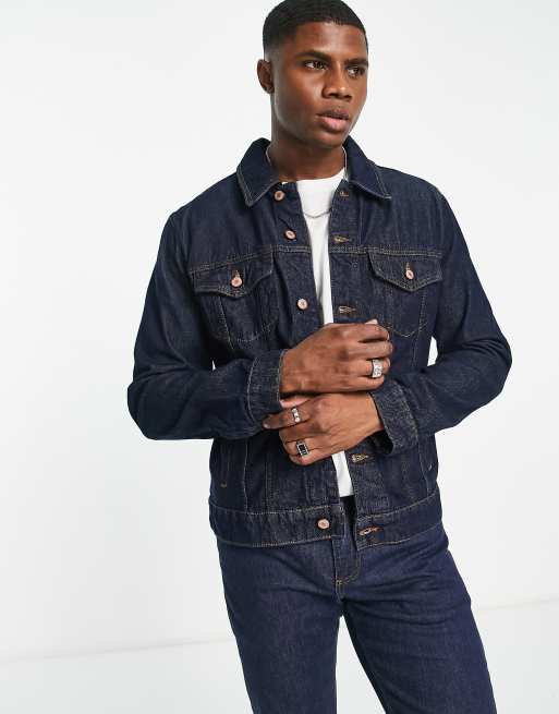 ASOS DESIGN classic denim jacket with borg lining in dark wash