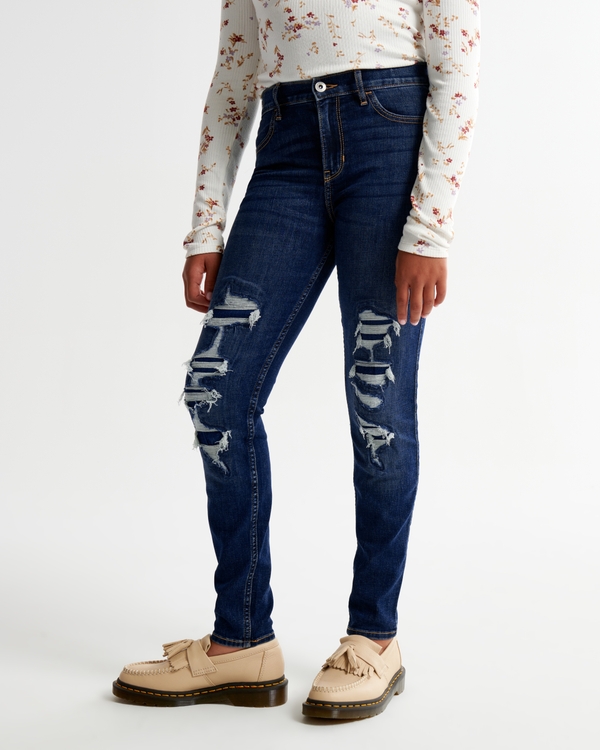 abercrombie kids Ripped Super Skinny Jeans in Black Destroy