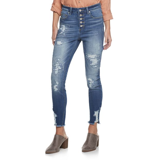 Juniors Indigo Rein Mid Rise Double Button Skinny Jeans