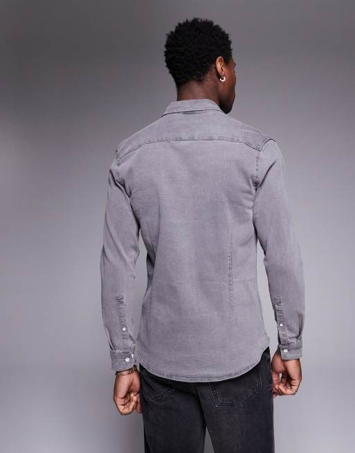 Asos clearance mens denim, ASOS DESIGN stretch slim denim shirt in washed black clearance