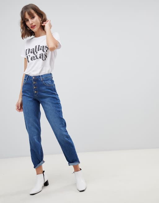 Jeans with four clearance buttons, Stradivarius STR 4 button mom fit jean ASOS clearance
