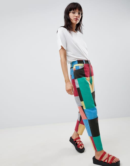 Asos design balloon leg clearance boyfriend jeans in patchwork print