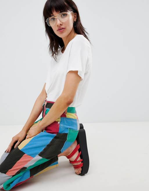 Asos design balloon leg clearance boyfriend jeans in patchwork print, ASOS DESIGN balloon leg boyfriend jeans in mid blue wash ASOS clearance