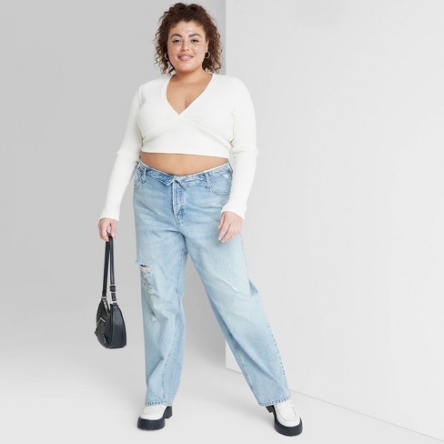 Target womens jeans clearance tall, Women s High rise Foldover Straight Jeans Wild Fable Light Wash clearance