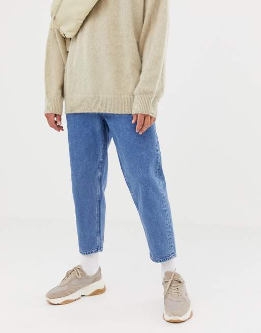 ASOS WHITE tapered cropped jeans in 14 oz mid wash denim ASOS