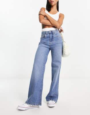 Cotton on wide clearance leg jeans, Cotton On stretch wide leg jeans in mid blue ASOS clearance