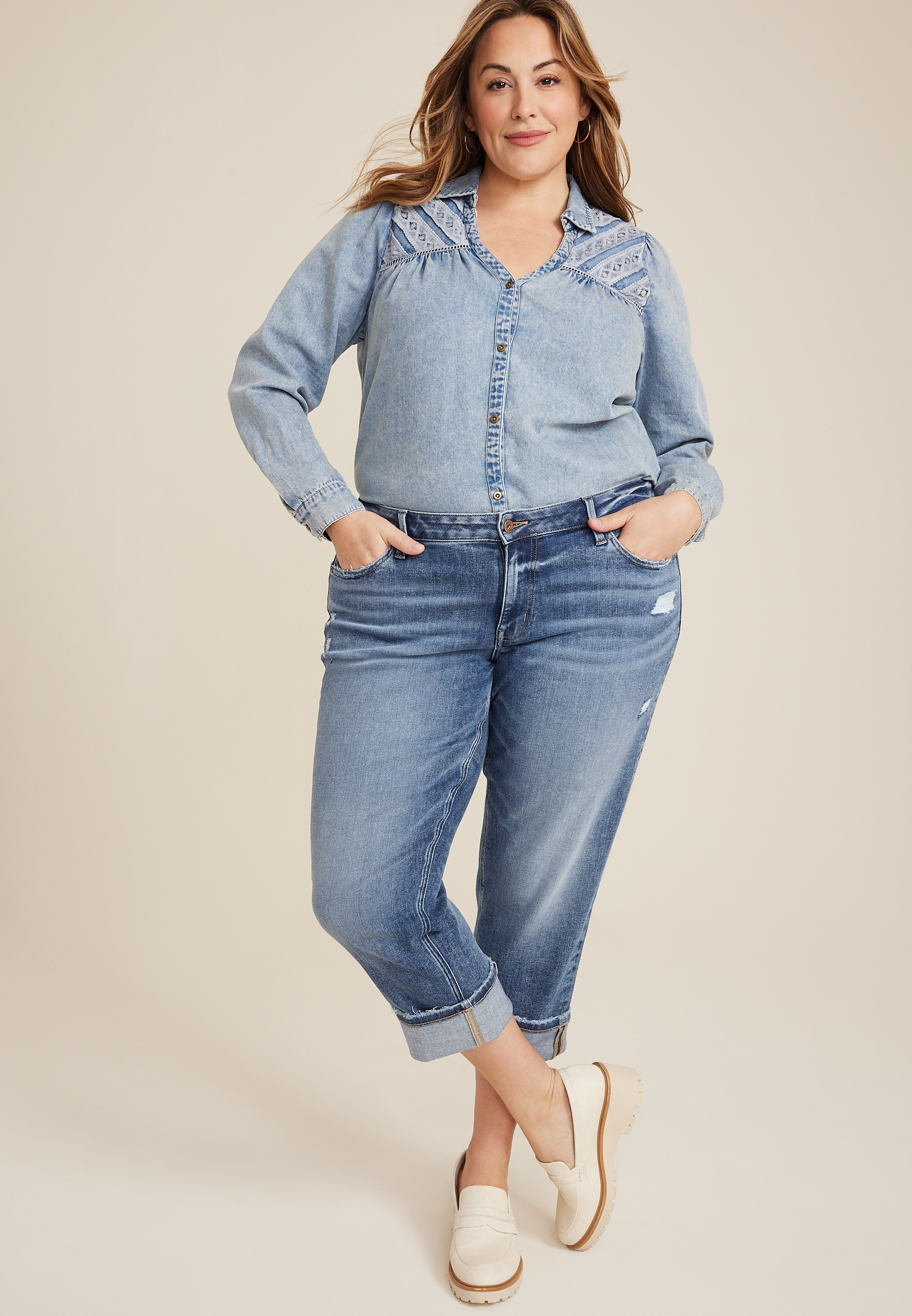 Plus Size edgely Mid Rise Medium Relaxed Boyfriend Crop Jean
