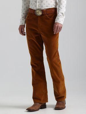 Bootleg clearance corduroy pants, Beige Bootcut Corduroy With Brown Saddle Stitch And Bottom Zipper clearance