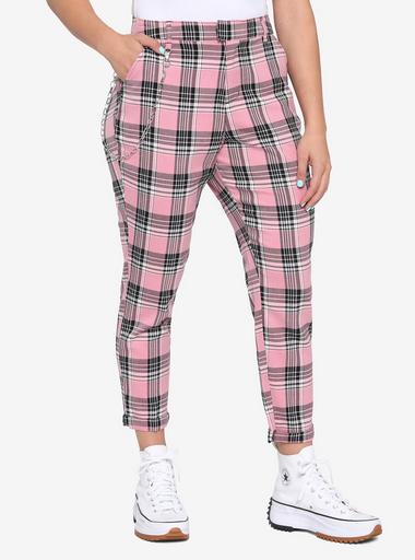 Pink Plaid Pants With Detachable Chain Hot Topic