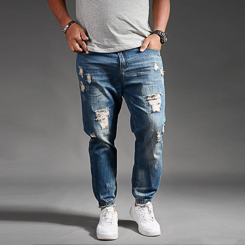 Big mens distressed clearance jeans, Plus Size Ripped jeans men pants denim fashion cowboy big size 40 clearance