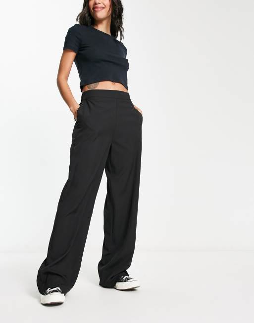 Flounce London basic high waisted wide leg trousers in black