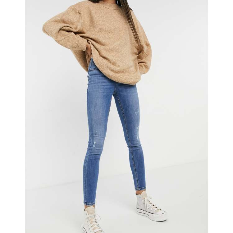Vero Moda Sophia high rise skinny jean with distressing in medium blue
