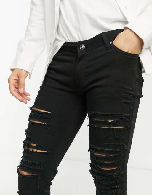 Black damage jeans clearance for womens