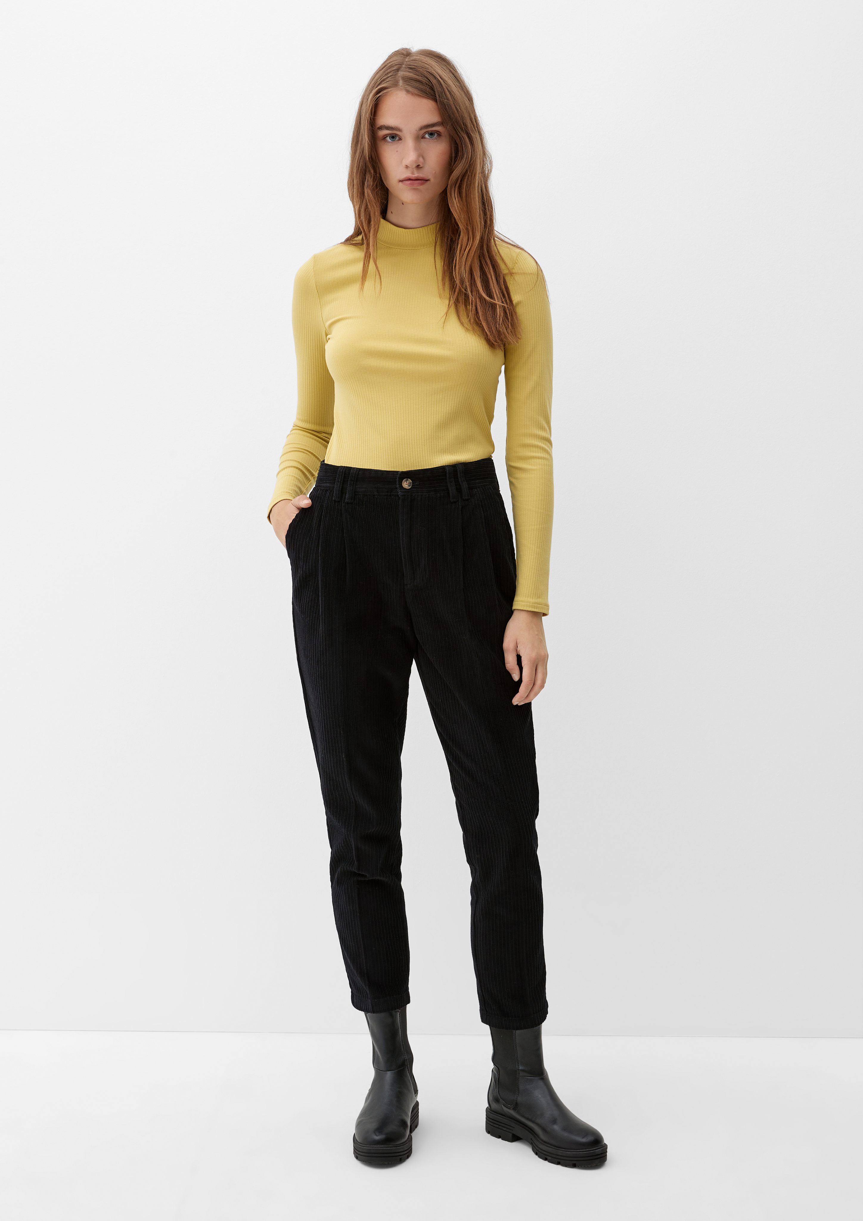 Yellow high waisted clearance trousers, High waisted corduroy trousers beige s.Oliver clearance