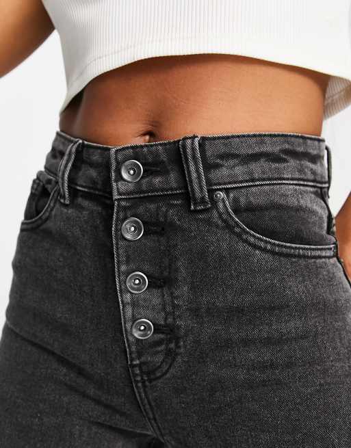 Only Emily high waisted straight leg jeans with exposed buttons in black