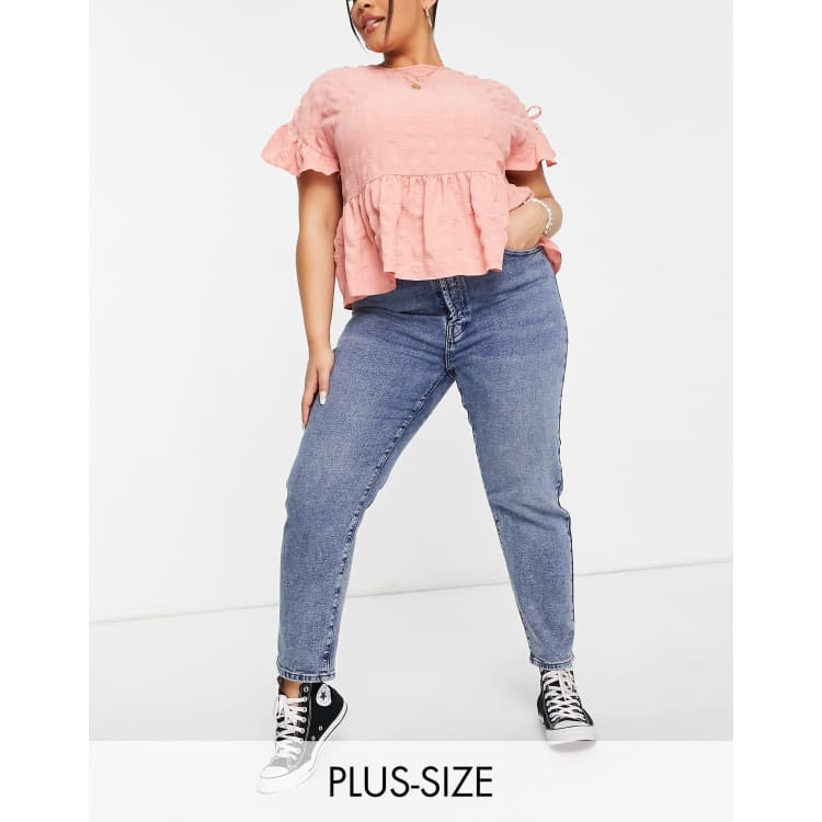 Plus size ruffle clearance jeans, Only Curve Josie slim leg jeans with high rise in medium blue ASOS clearance