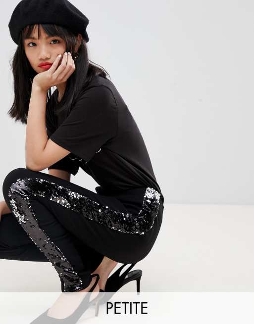 Lost Ink Petite coated trousers with sequin side stripe