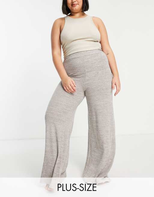 Loungeable Plus soft knit wide leg lounge trousers in khaki marl