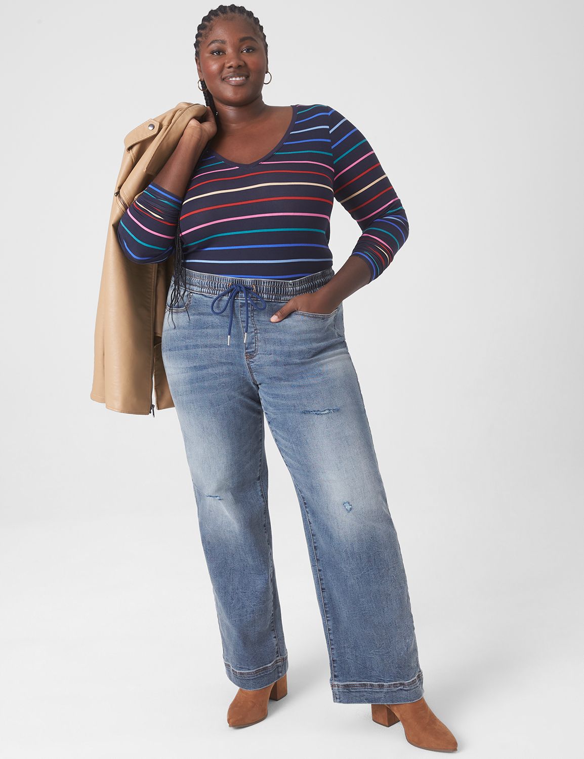 Pull On High Rise Cozy Wide Leg Jean Medium Wash LaneBryant