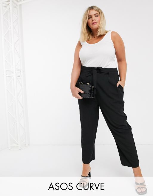 ASOS DESIGN Curve tailored tie waist tapered ankle grazer trousers
