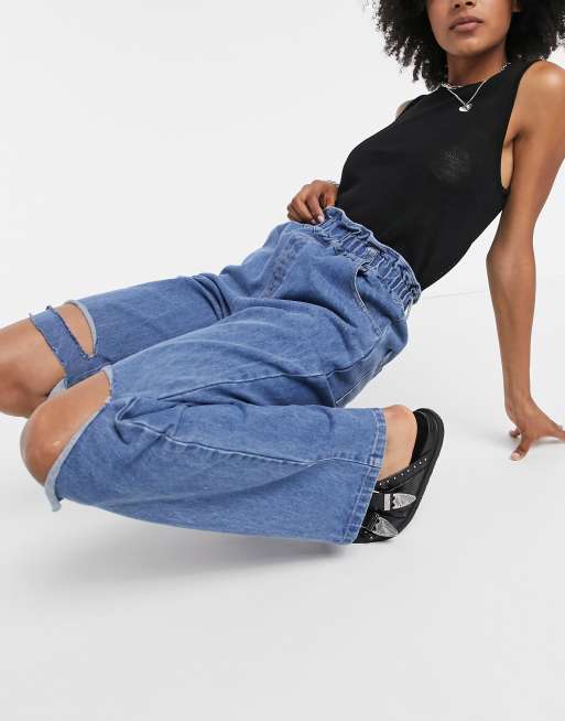 Emory Park relaxed jeans with ripped knees and paper bag waist