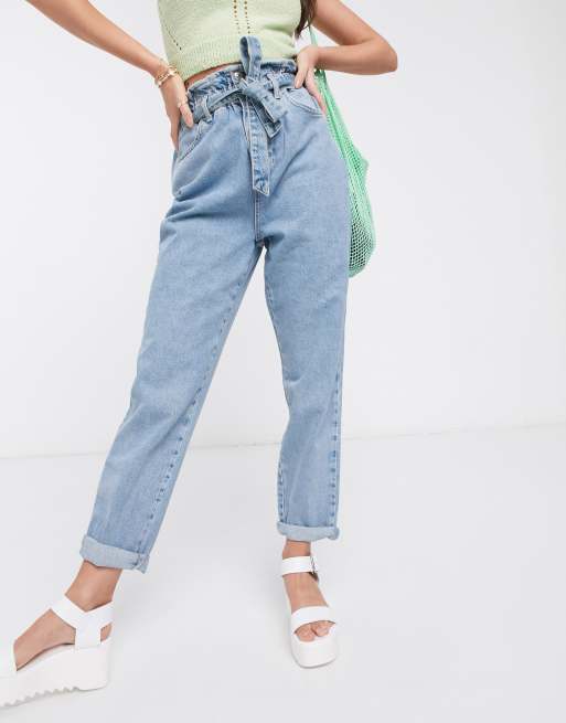 New Look paperbag tie waist jean in light blue ASOS