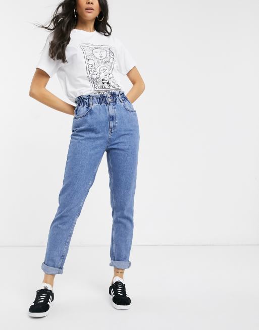 Plus Size Mid Blue Paperbag Waist Stretch MOM Jeans Yours Clothing