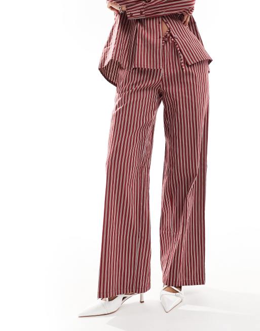 Motel stripe wide leg trouser co ord in maroon