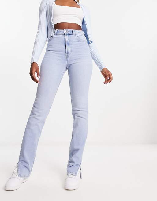 Light Wash Split Hem Jeans Denim PrettyLittleThing