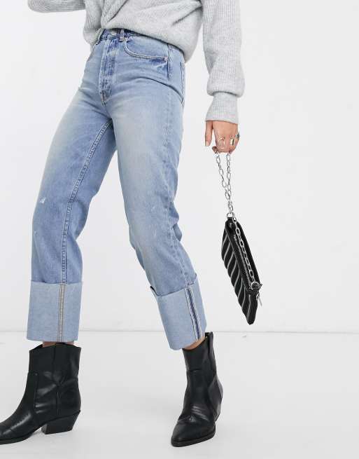 ONLY Blue Turn Up Straight Leg Jeans New Look