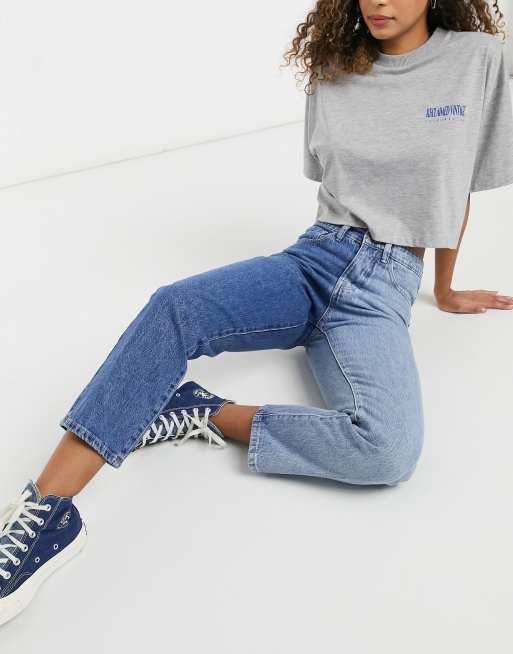 Stradivarius straight leg contrast two tone jeans in blue ASOS