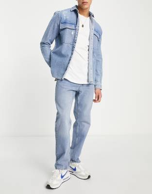 Pull Bear vintage straight leg jeans in light blue Compare