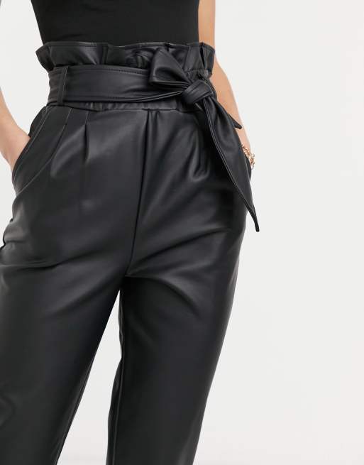 Black Faux Leather Tie Waist Pants PrettyLittleThing