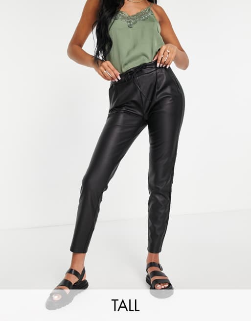 ASOS DESIGN Tall leather look tie waist peg trouser in black