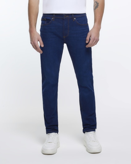 Mens Dark Blue Denim Jeans Comfort Stretch Slim Fit Trousers Pants Gents eBay