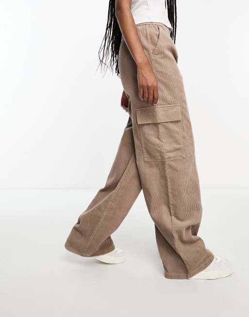 ASOS DESIGN Tall cord pull on cargo trouser in biscuit