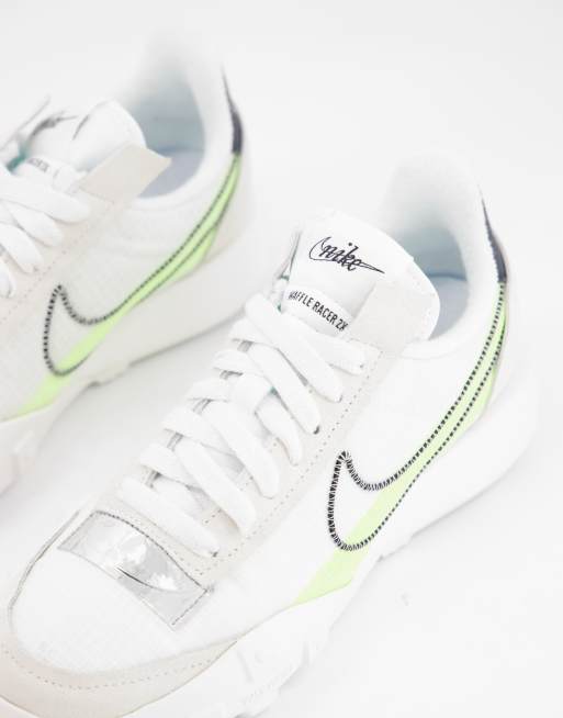 Nike waffle racer clearance white, Nike Waffle Racer trainers in white and volt green ASOS clearance