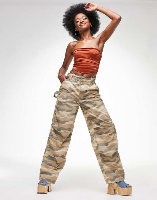 ASOS DESIGN slouchy knee dart cargo trouser in camo