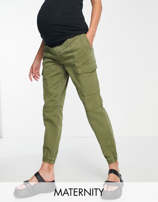 ASOS DESIGN Maternity cargo trousers in khaki with under the bump waistband