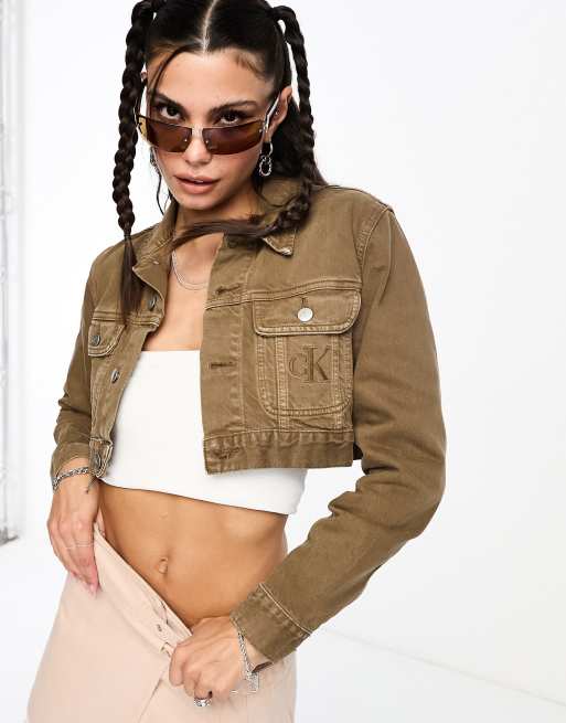 Camel denim clearance, Calvin Klein Jeans co ord extreme crop 90s denim jacket and jeans clearance