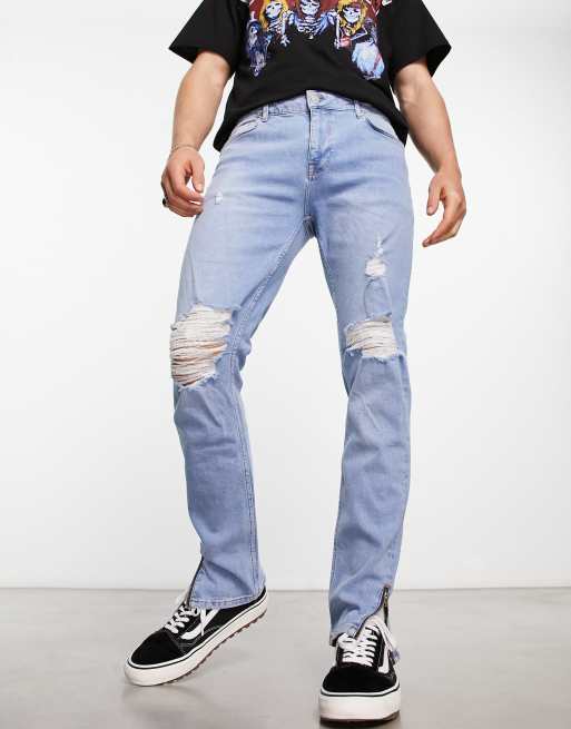 ASOS DESIGN skinny jeans with knee rips and zip detail in light